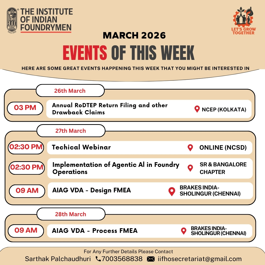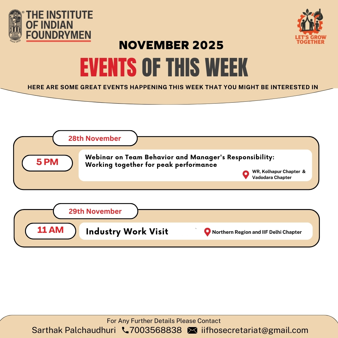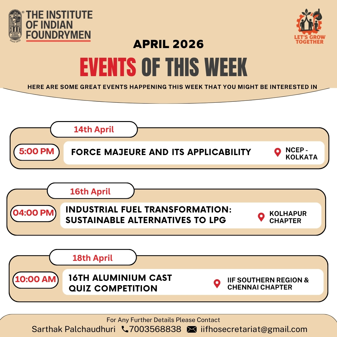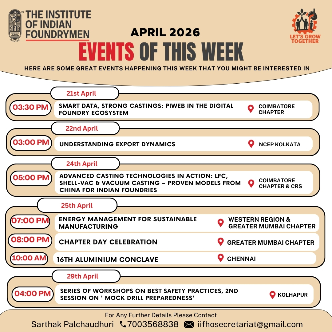The Indian Foundry Journal (IFJ) is the official Journal of the IIF. For procurement Connect Uma Palchoudhury