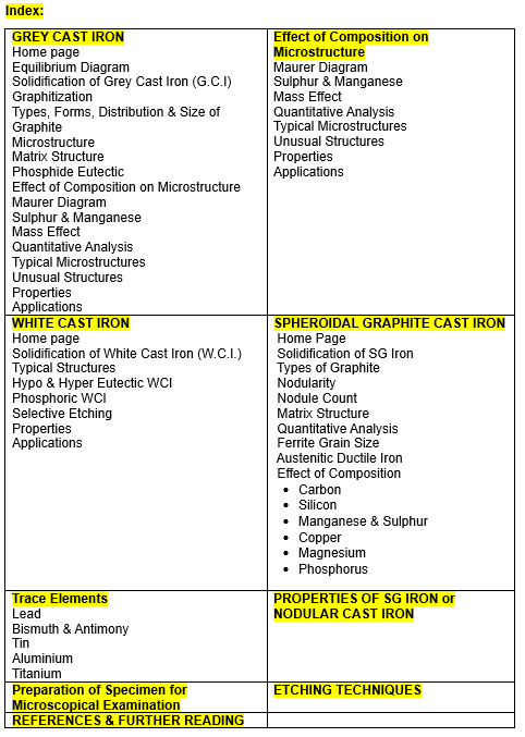 Exhaustive coverage of Solidification process; Cast Iron explanation of all phases after solidification; their inter relationship and effect on final properties of poured casting. Special attention to Micrography – preparation of Micro-samples and correct interpretation of Micro images for Cast iron and SG Iron.