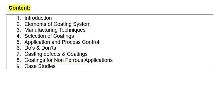This interactive Pen Drive covers complete spectrum of Refractory Coatings used on moulds and cores in Ferrous Foundries as well as Die coatings used in Non-Ferrous Foundries. Technical Information on raw materials, manufacturing Techniques, Quality Control measures used in the production of good quality refractory coatings. This Pen Drive has special section for selection of Refractory Coatings for a particular casting. It also elaborates application techniques alongwith precautions required for obtaining satisfactory coating results. A special Chapter provides details of defects resulting from improper selection / application of refractory coatings and ‘do’s and ‘don’ts for avoiding defects. This Pen Drive combines theoretical aspects of coating formulations and comprehensive practical insight of the Experts with decades of domain experience.