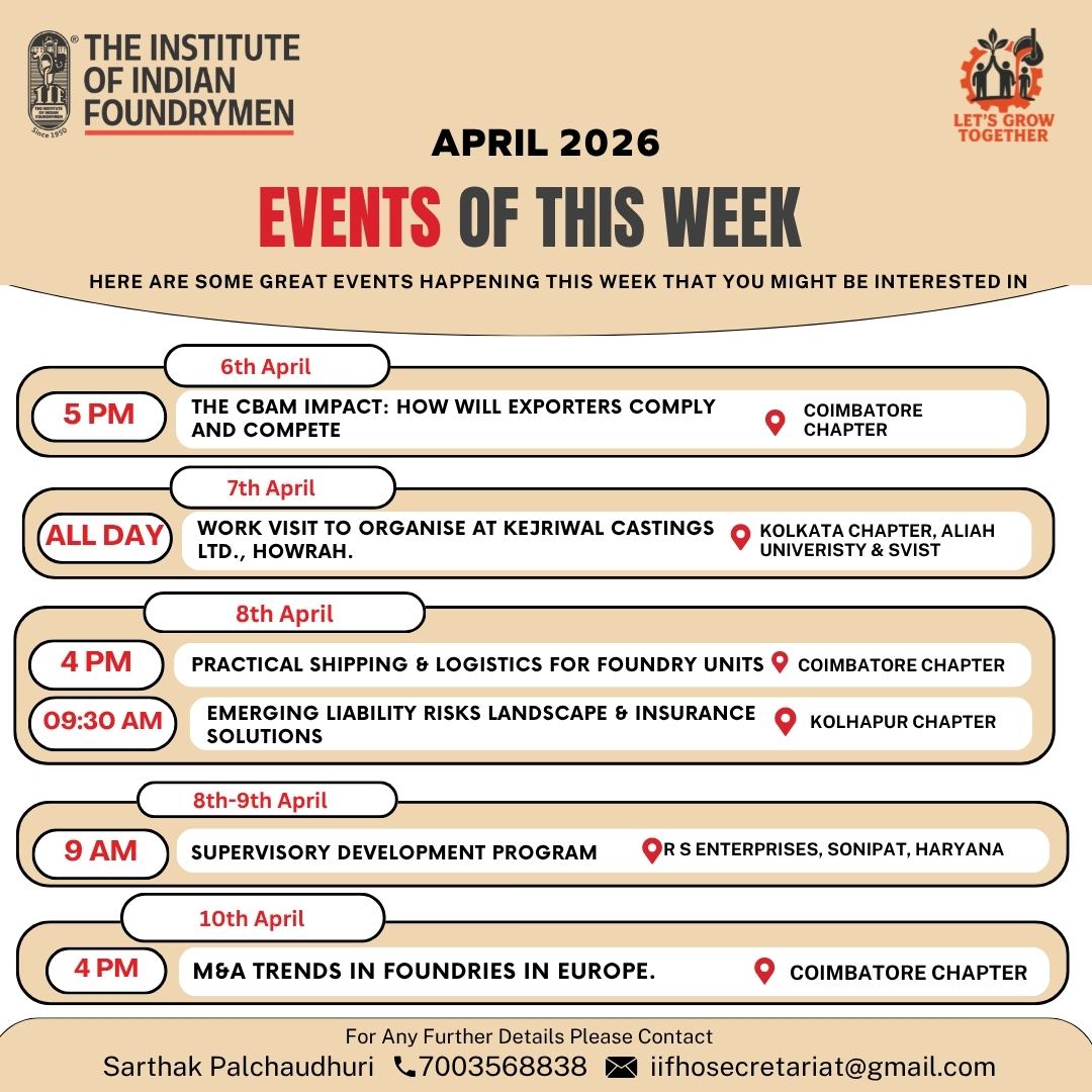 The Indian Foundry Journal (IFJ) is the official Journal of the IIF. For procurement Connect Uma Palchoudhury