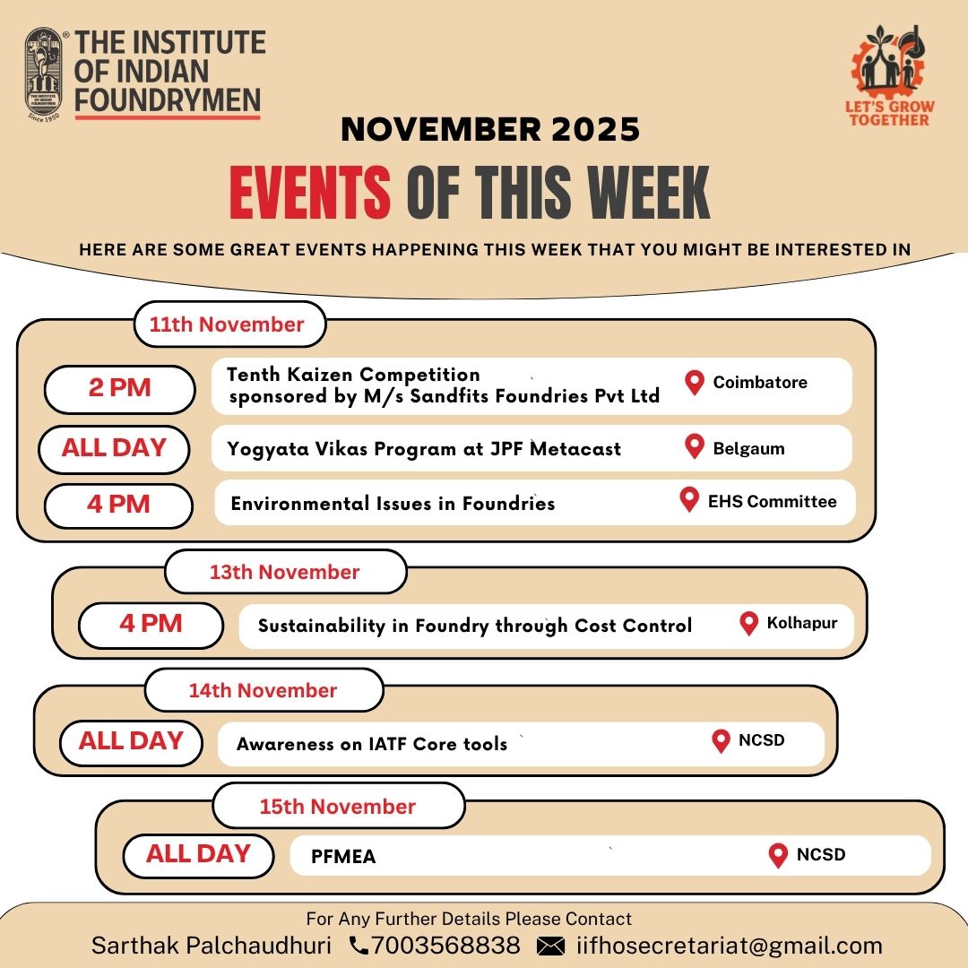 The Indian Foundry Journal (IFJ) is the official Journal of the IIF. For procurement Connect Uma Palchoudhury